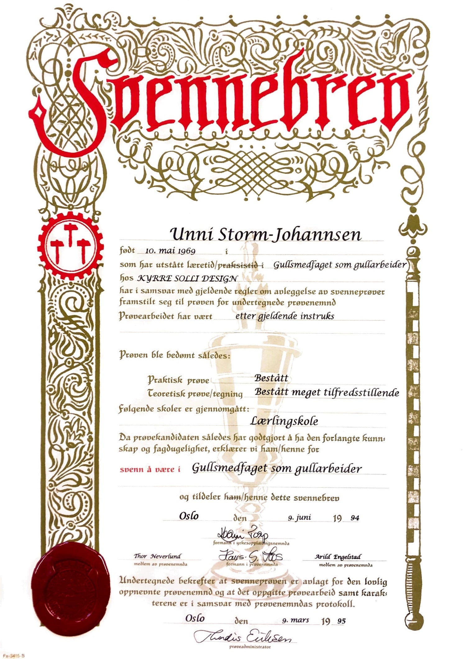 Gullsmed Unni Storm-Johannsen tok fagbrev i